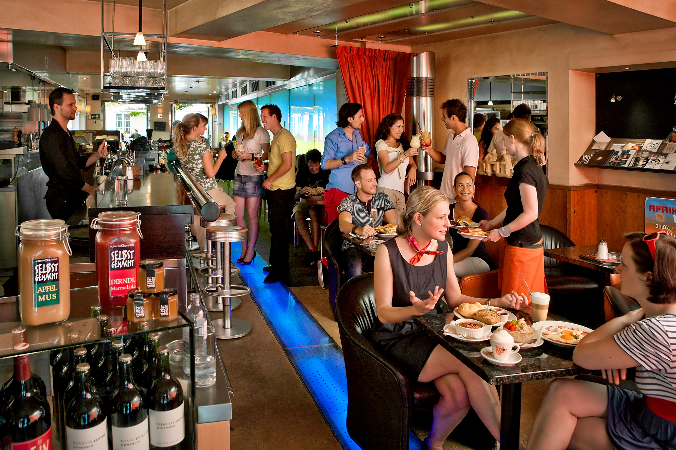 Das stylische Café überzeugt mit einem lässig gestalteten Gastraum und einem herrlichen kleinen Gastgarten im Innenhof. Eine gute Auswahl beim Frühstück sowie Tapas, hausgemachte Burger und Süßspeisen sorgen für täglich frischen Genuss von früh bis spät. Smoothies, hausgemachte Limonaden, Cocktails, Fassbier und glasweise ausgeschenkte Weine runden das Angebot ab. Latino-Musik sorgt im Gastraum für eine lockere Atmosphäre.